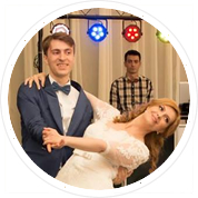 Vlad si Anda Tatu“Desi noi mergeam pe ideea unui vals simplu, nu-mi pare rau ca ne-am lasat "chinuiti" de Simona care ne-a realizat un dans complex ce surprindea la orice pas cu elemente noi si de efect. Am ajuns la scoala de dans Magic Dance prin recomandarea unor prieteni care au luat cu un an in urma lectii de dans pentru nunta lor – si asa am cunoscut-o pe Simona, instructoarea ce urma sa ne introduca in tainele “vienezului”. Am inceput lectiile cu aproximativ 6 saptamani inainte de nunta si am optat pentru pachetul de 10 sedinte a cate o ora. Noi nu suntem mari dansatori, insa Simona a reusit sa ne evalueze corect plusurile si minusurile, creand astfel pas cu pas o coreografie perfect adaptata pentru noi.” |